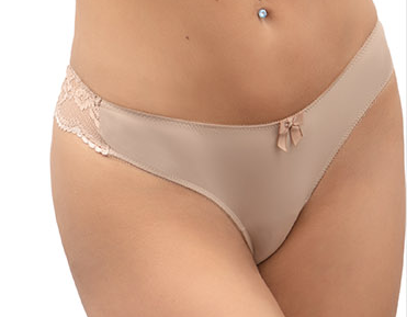 Трусы бразилианы со средней линией талии. Передняя деталь выполнена из гладкого эластичного полотна, задняя – из кружева. Ластовица из хлопкового полотна.